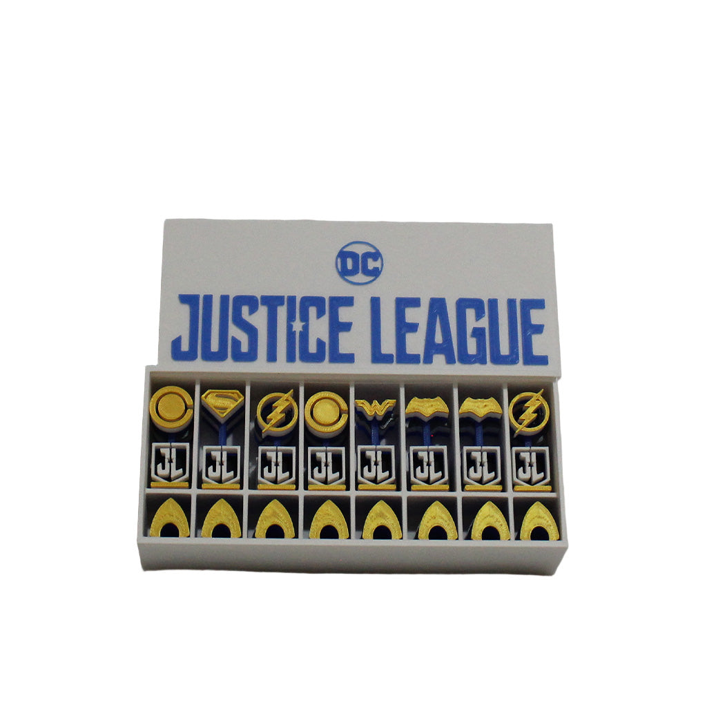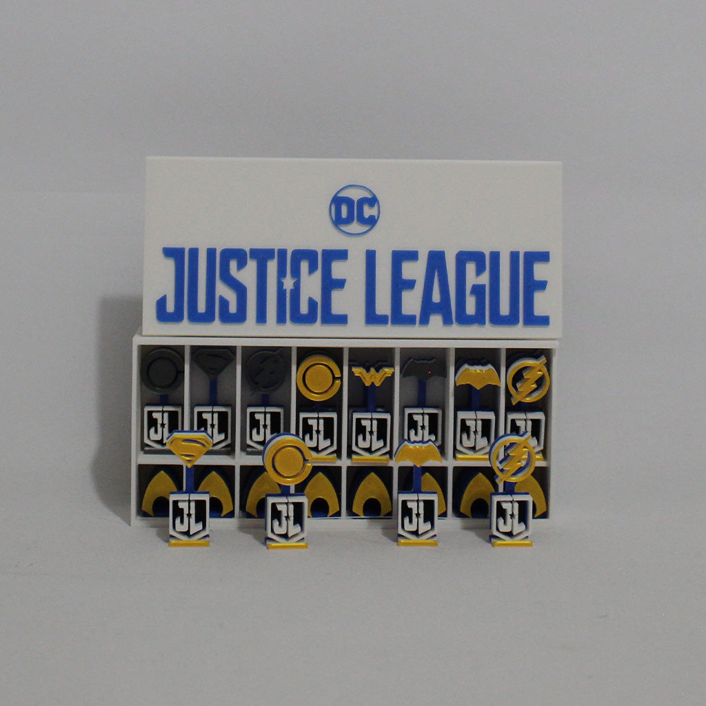 🛡️ Iconic superhero design – bold Justice League logos and character symbols