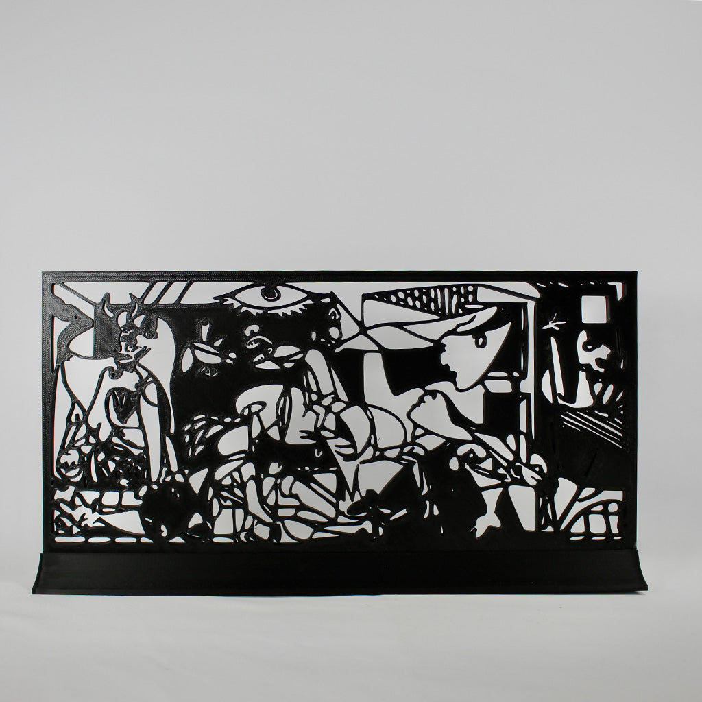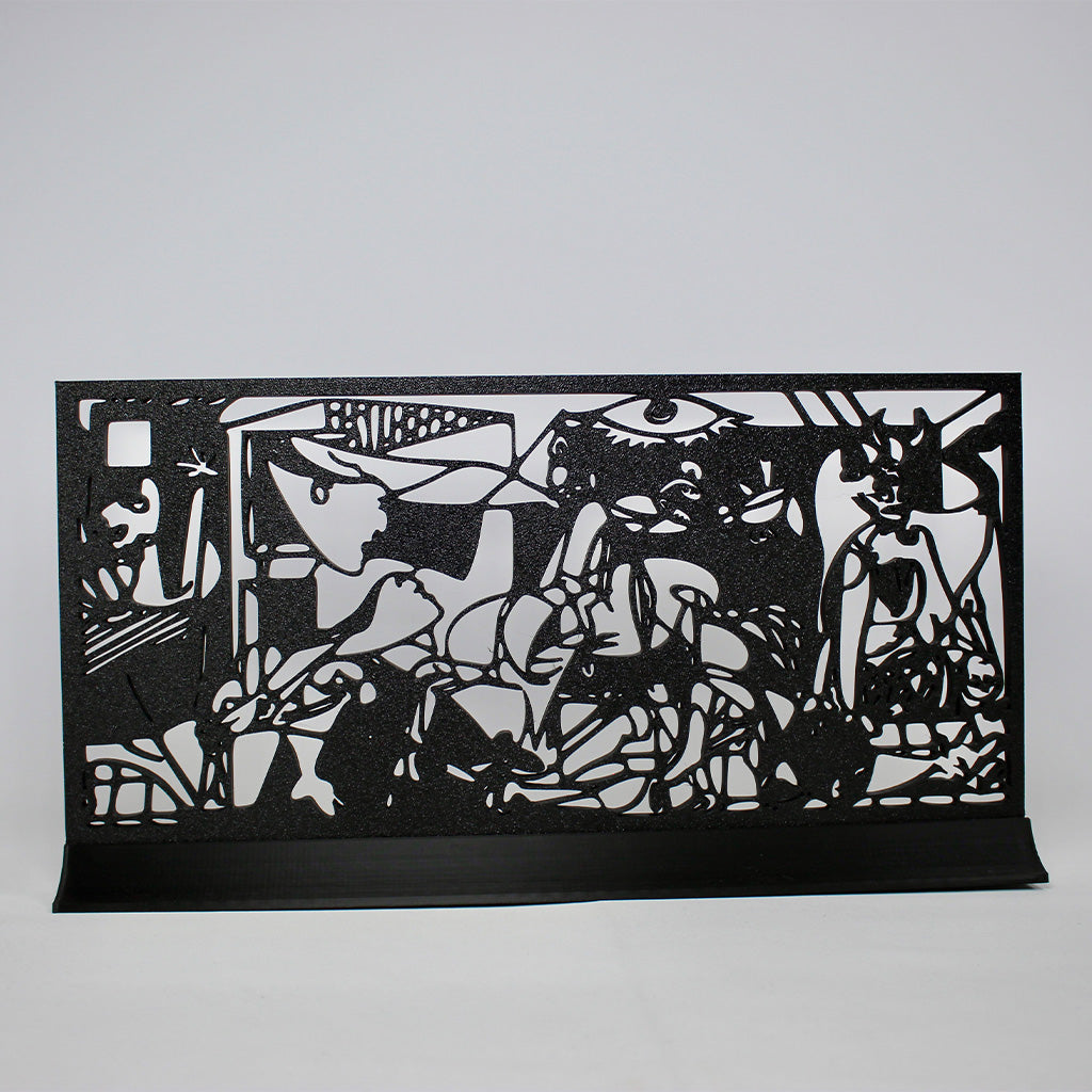 Add a bold, intellectual touch to your space with this 3D-printed decorative panel inspired by Picasso’s "Guernica". Its minimalist black silhouette captures the emotional intensity of one of the most iconic anti-war artworks of all time.