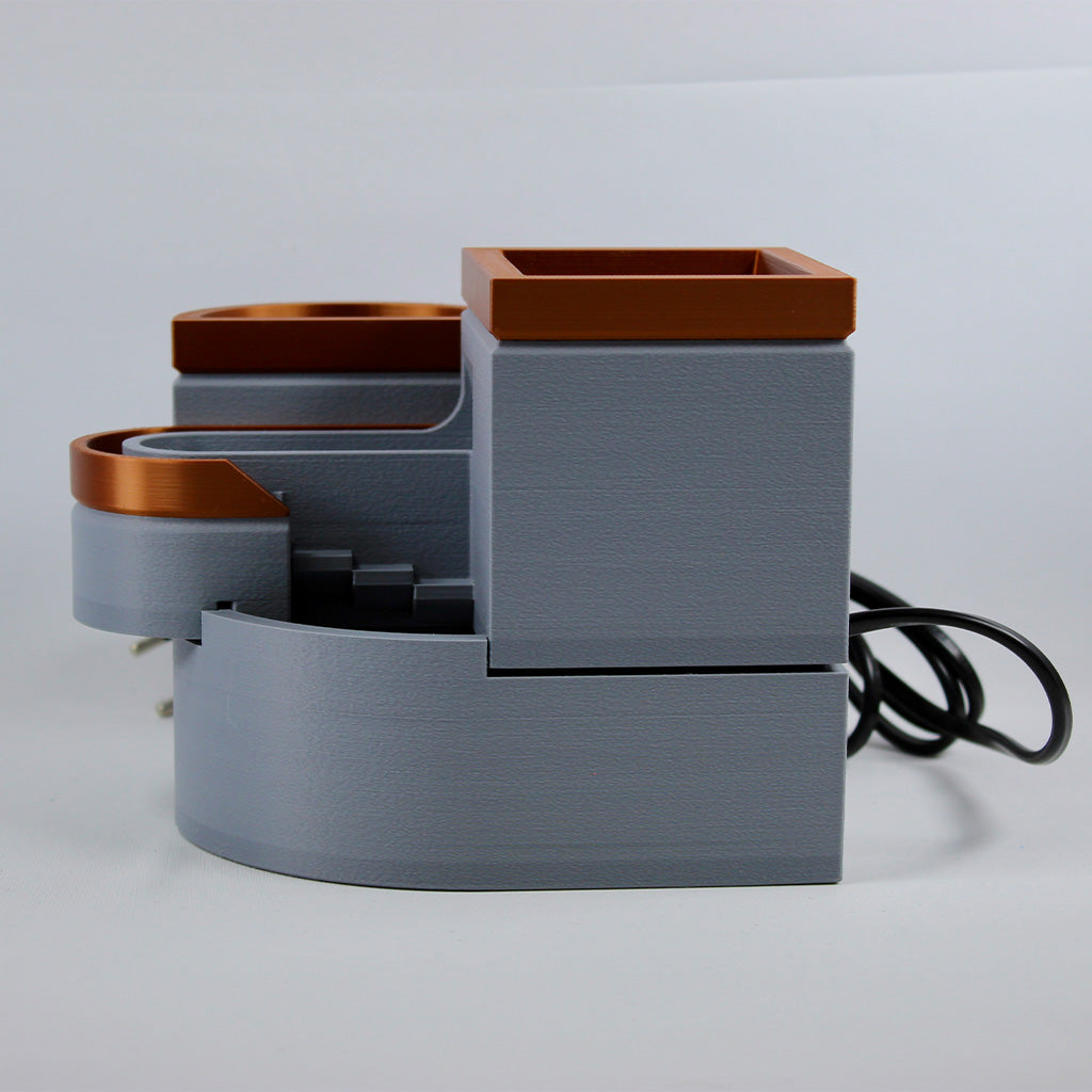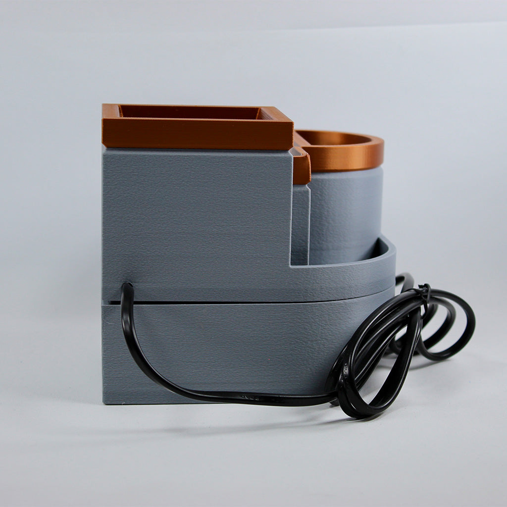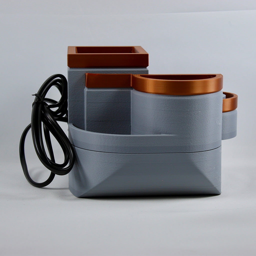 Minimalism, movement, and life. The Form and Foliage Fountain & Planter combines clean geometric lines with the soothing sound of flowing water and space for small plants or succulents. A bold tabletop statement piece perfect for relaxing interiors.