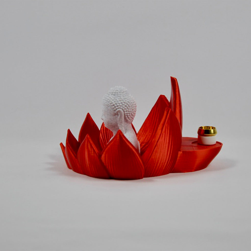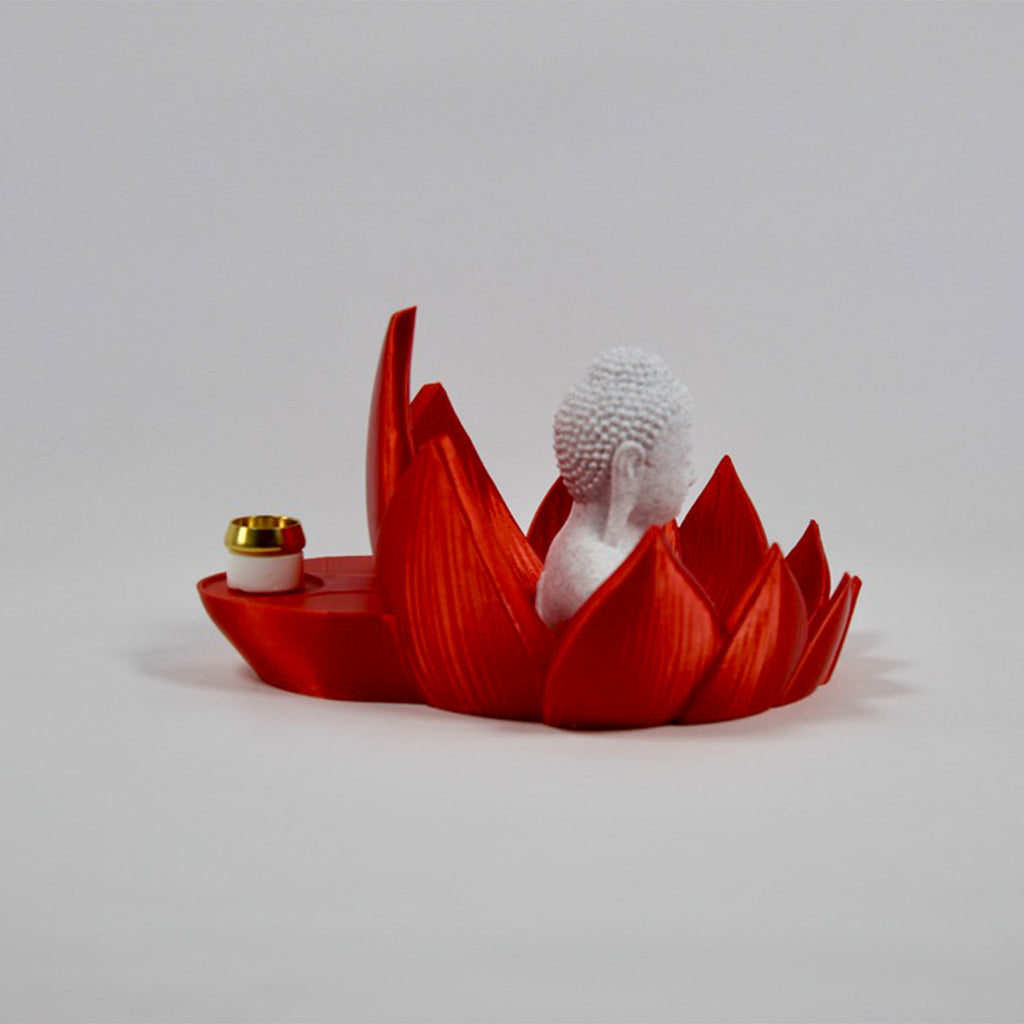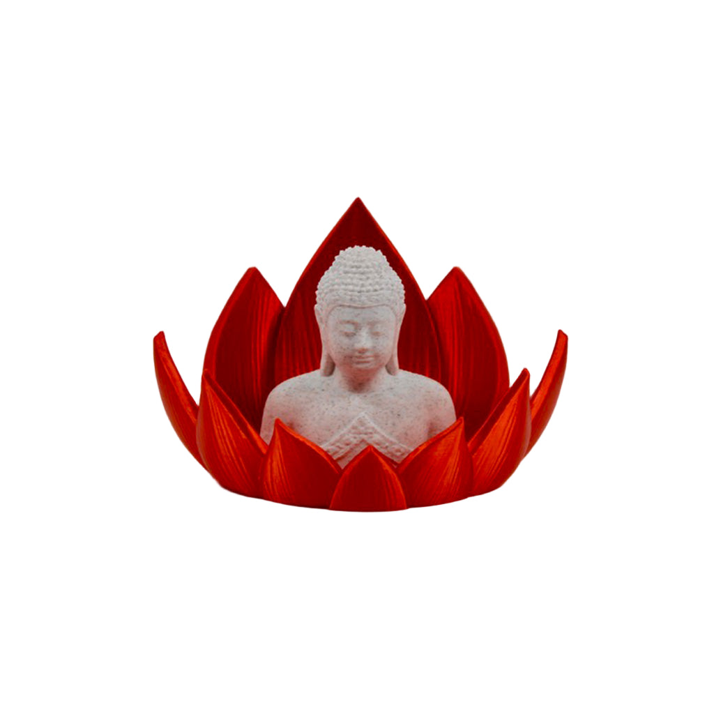 🎨 Elegant Design: Lotus flower cradle with serene Buddha figure