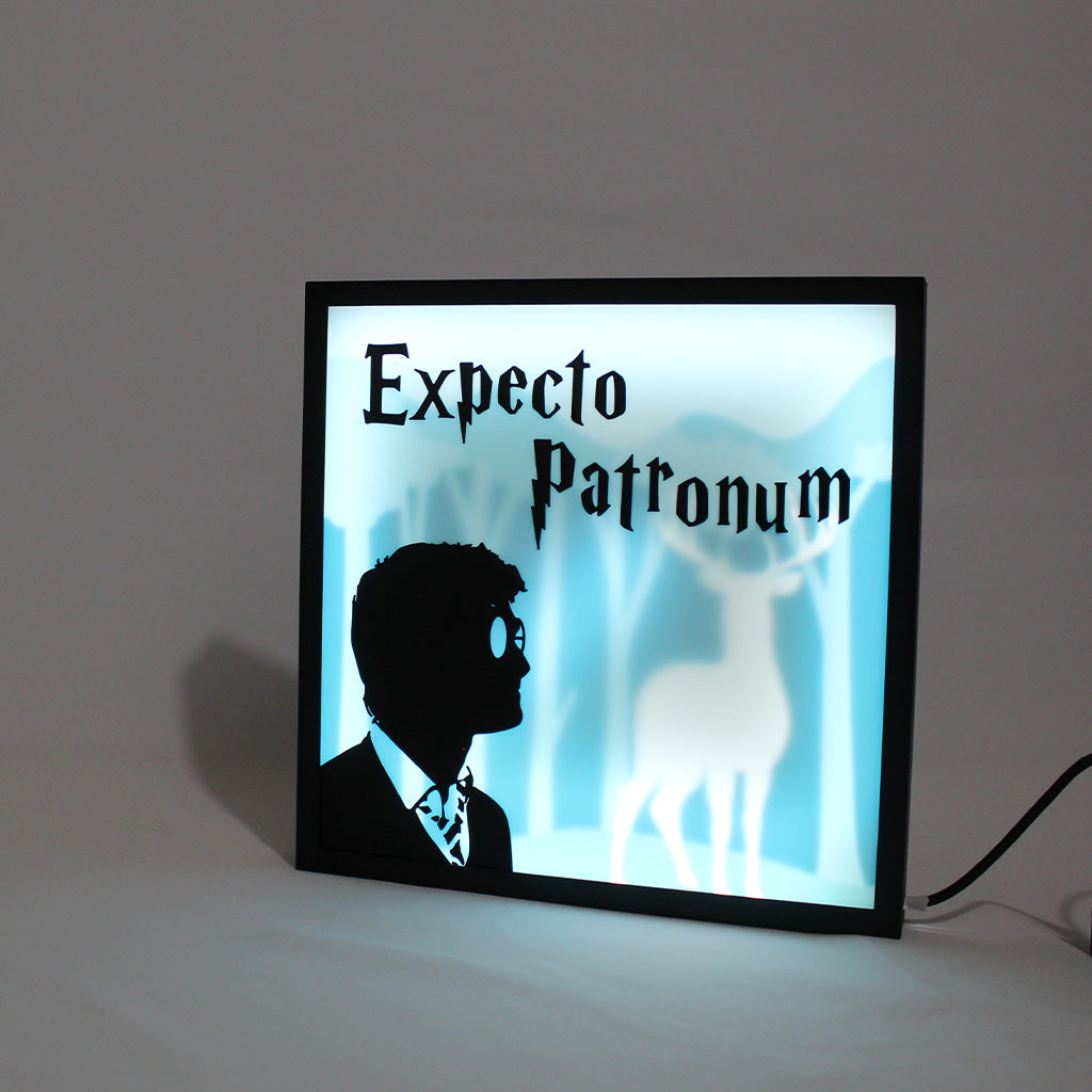Illuminate your space with the magic of the wizarding world! ⚡ This Expecto Patronum LightBox features the iconic silhouette of the boy who lived and the legendary spell that drives away darkness. A must-have piece for every true Potterhead! 🖤