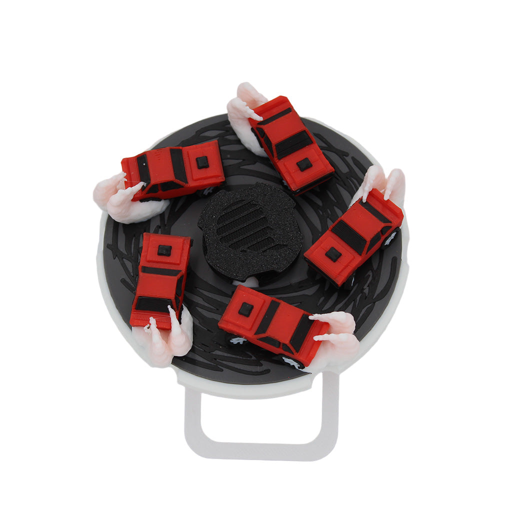 Feel the speed and drift into fun! This 3D-printed kinetic spinner features blazing red cars drifting on a spinning track, complete with dynamic smoke trails. A piece that brings action to your desk! 🏁