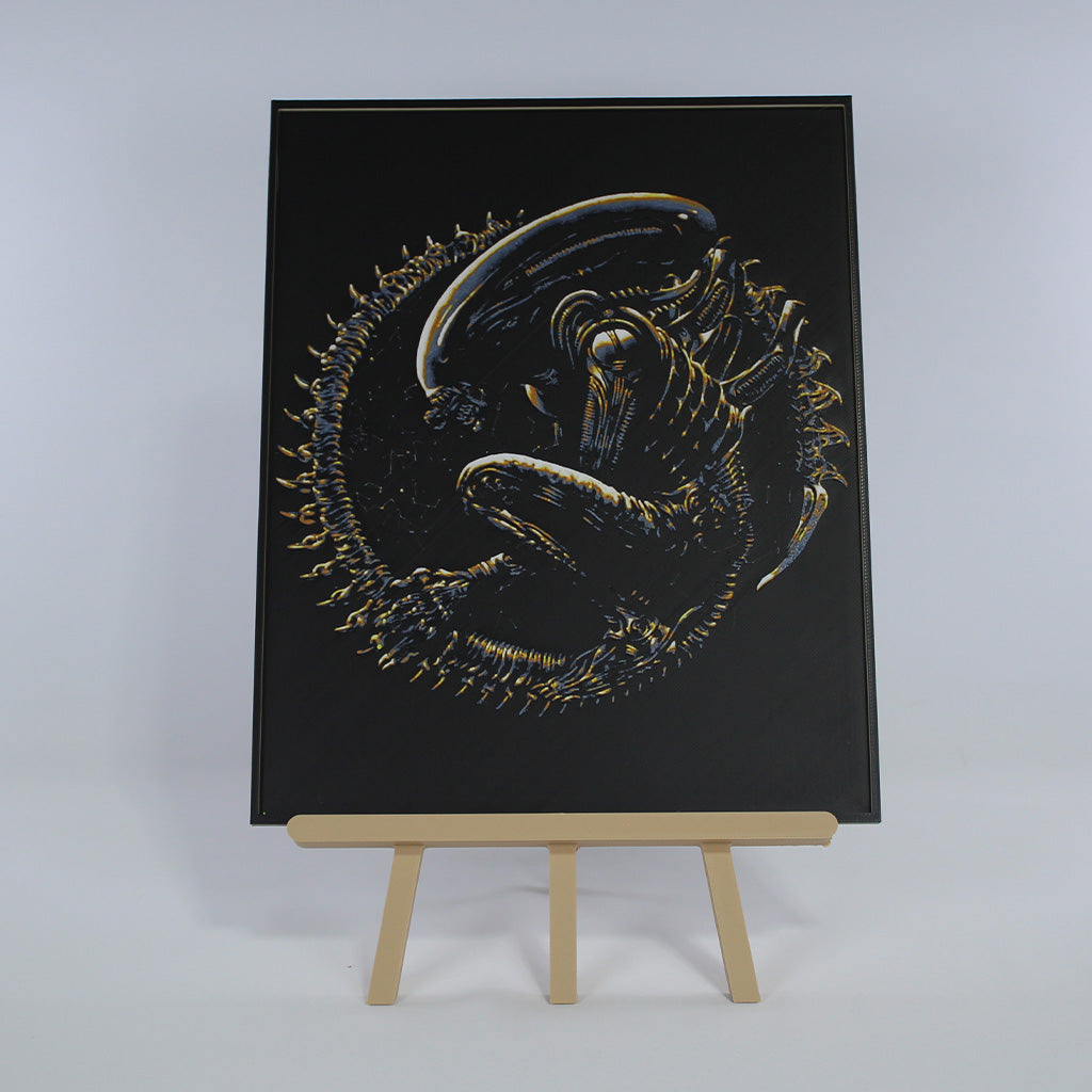 Bring the mystery of the cosmos to your walls with this Alien Circle Hueforge. A hypnotic piece that captures the essence of the iconic xenomorph curled into a perfect circle, blending sci-fi elegance with artistic craftsmanship.