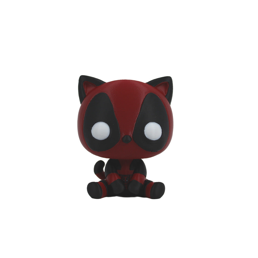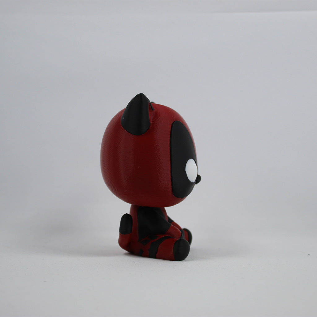 Unleash the sass and mischief of Catpool, the ultimate mashup of a sarcastic cat and everyone's favorite anti-hero! With striking red-and-black colors, curled tail, and expressive detailing, this 3D printed figure is a must-have for fans of both cats and comics. 🐾🔥