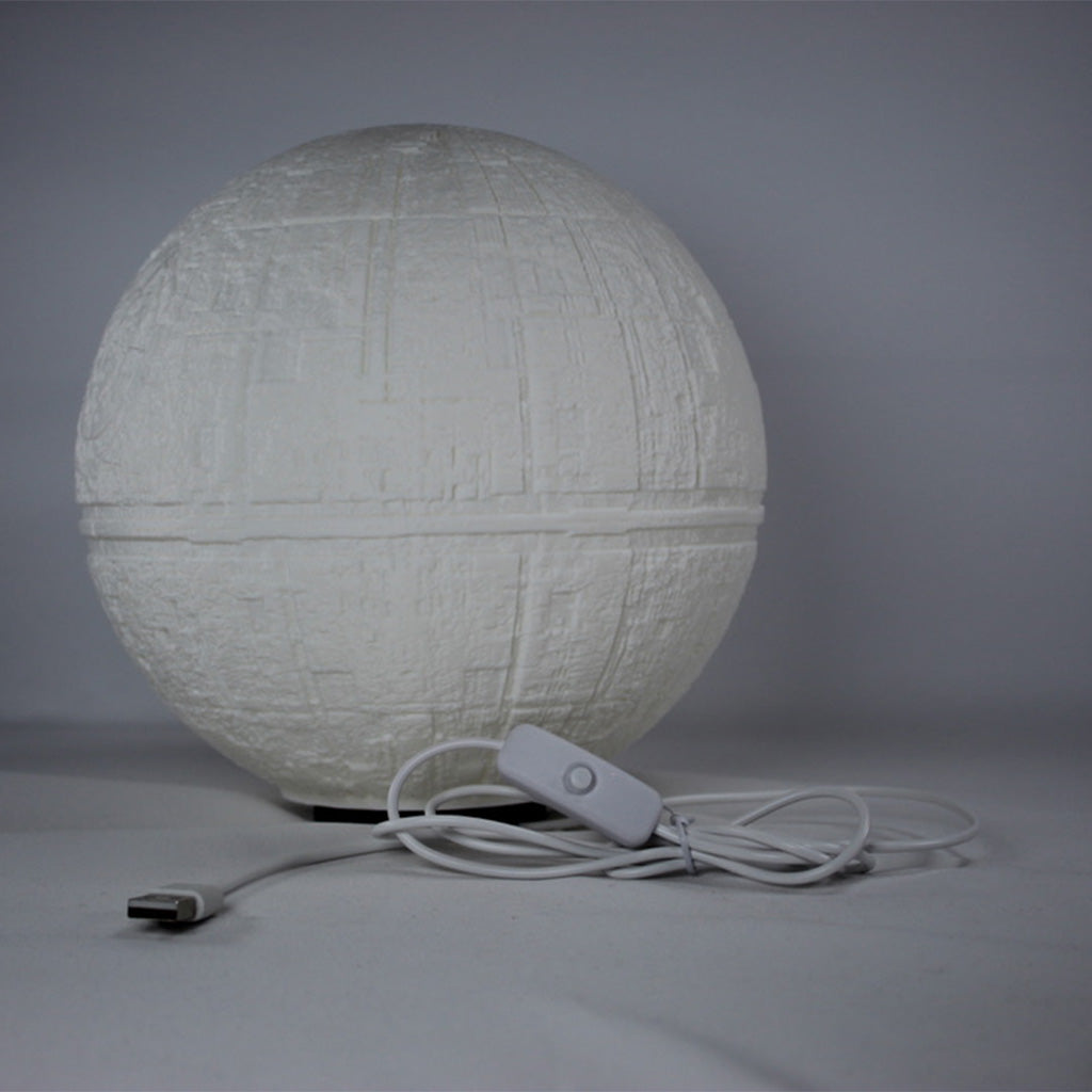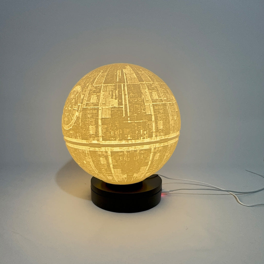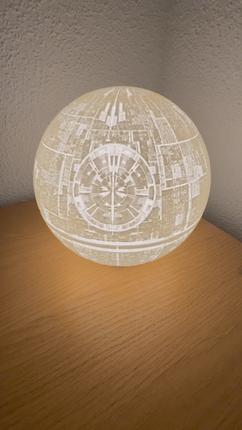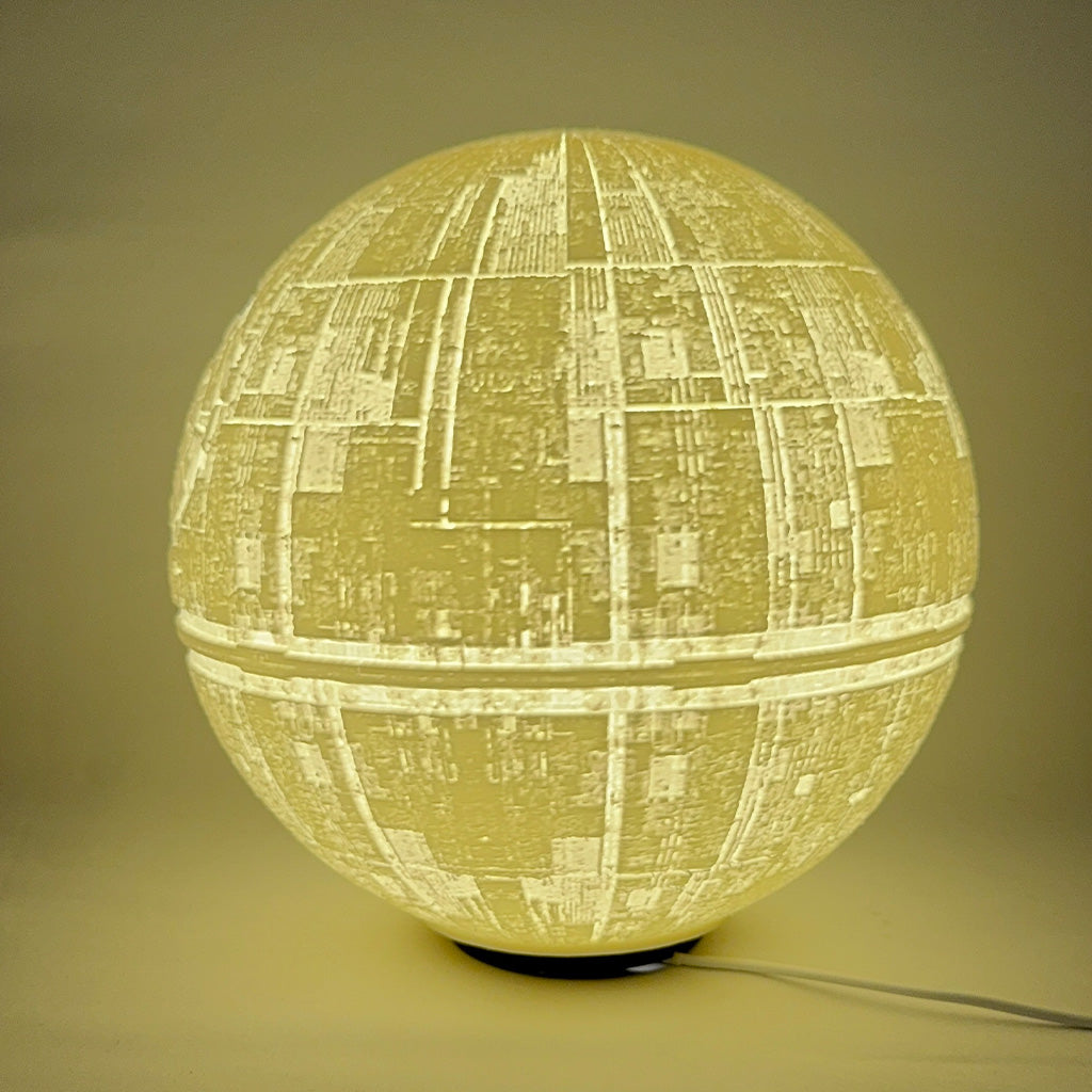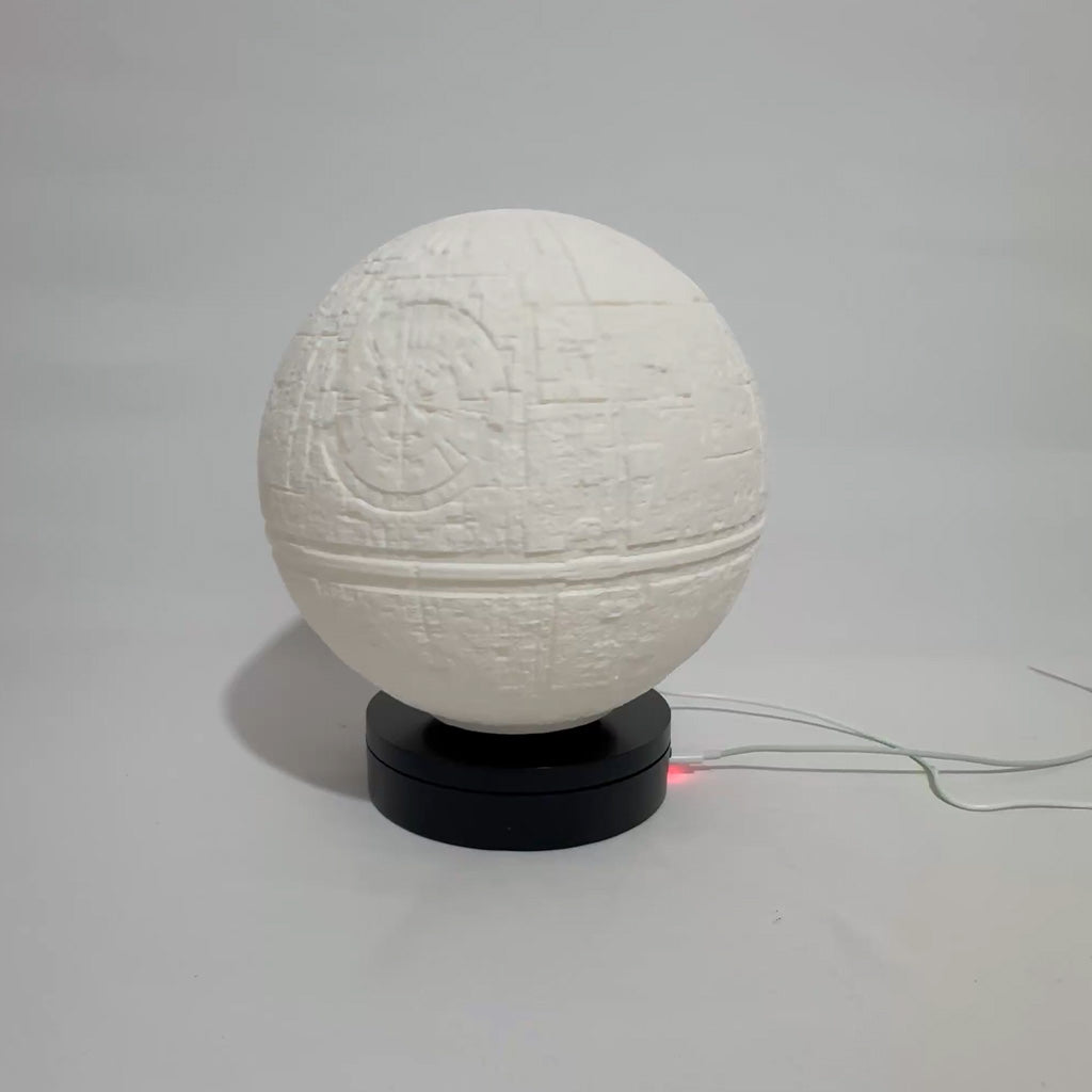 A galactic centerpiece for your home or workspace! This stunning Death Star lamp, 3D printed with intricate detail, captures the look of the Empire's ultimate weapon while providing a soft and atmospheric glow. Perfect for sci-fi lovers and collectors! ⚔️