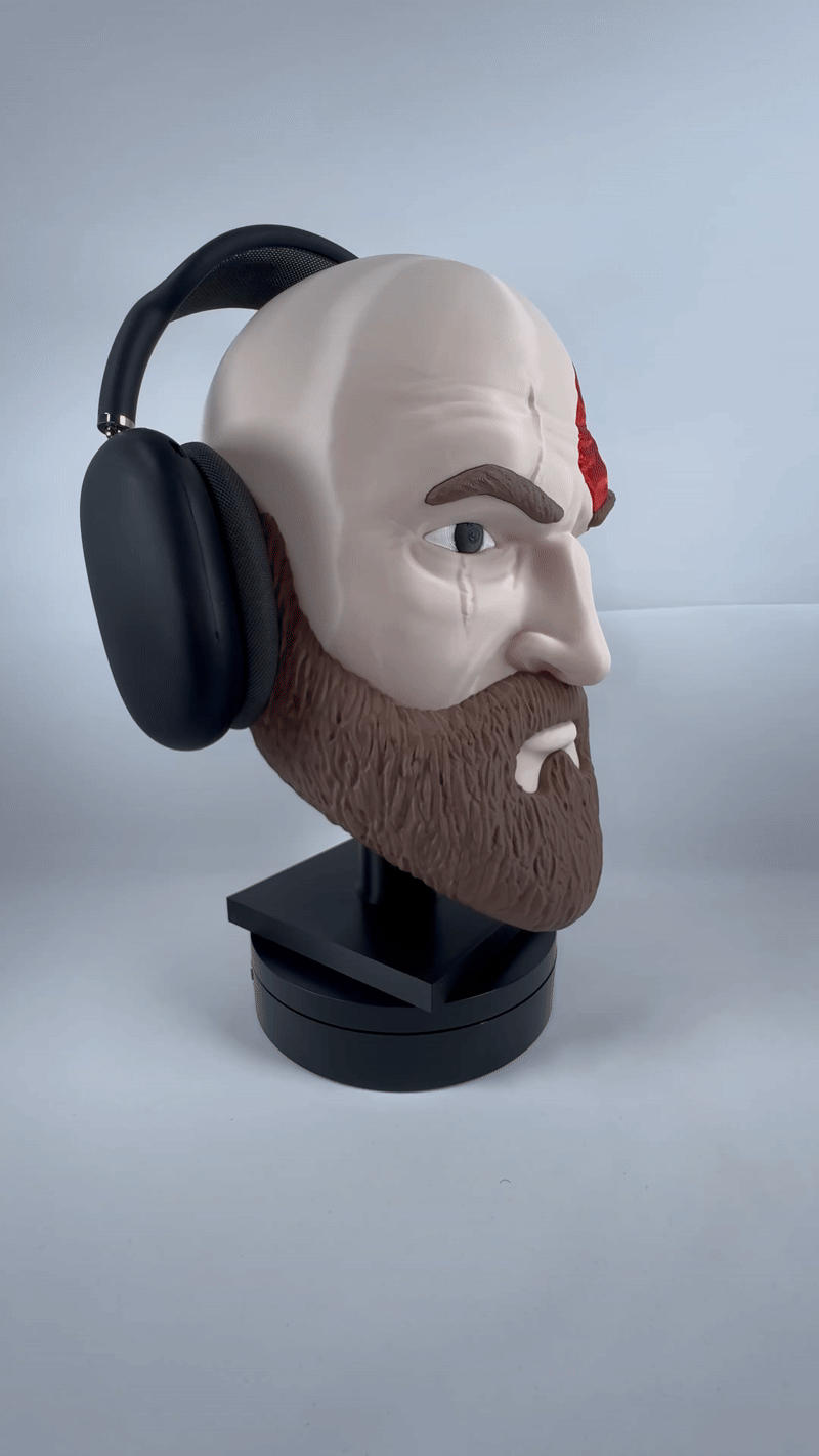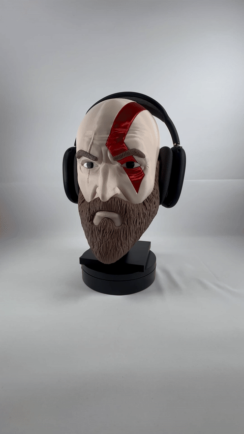 ⚔️🖤 Unleash the power of the God of War with this bold Kratos Headphone Holder! Designed for true gaming fans, this piece combines epic style and practicality. Whether on your desk or shelf, Kratos will hold your headphones with godlike strength 💪.