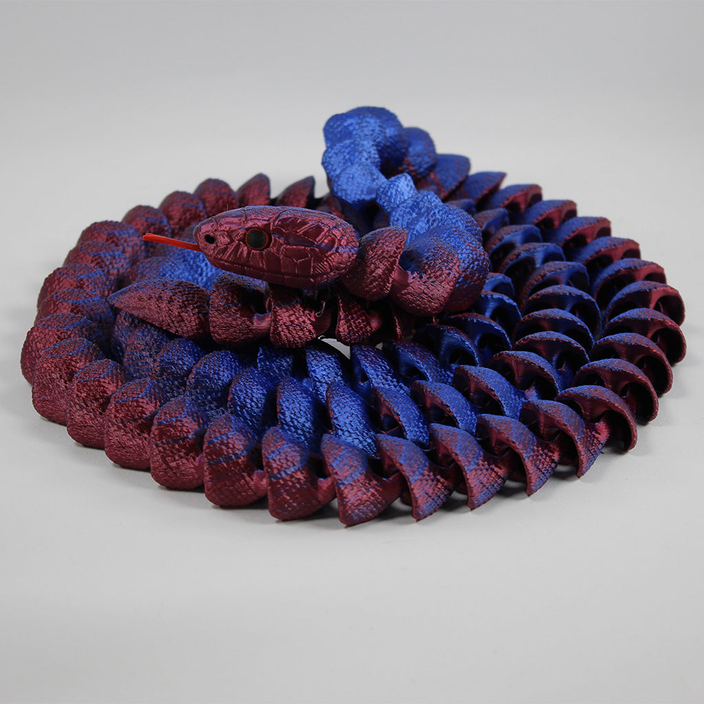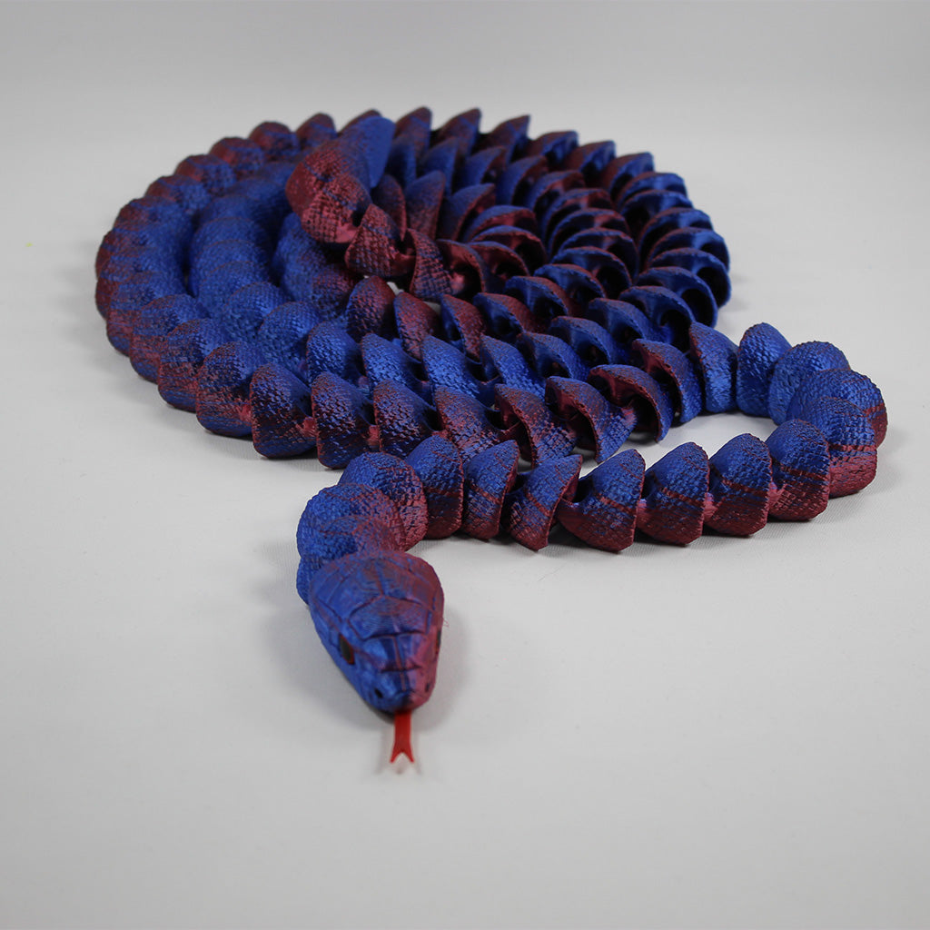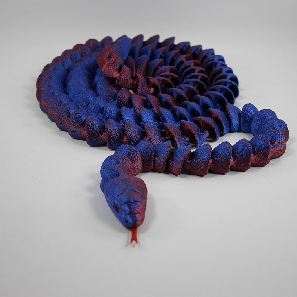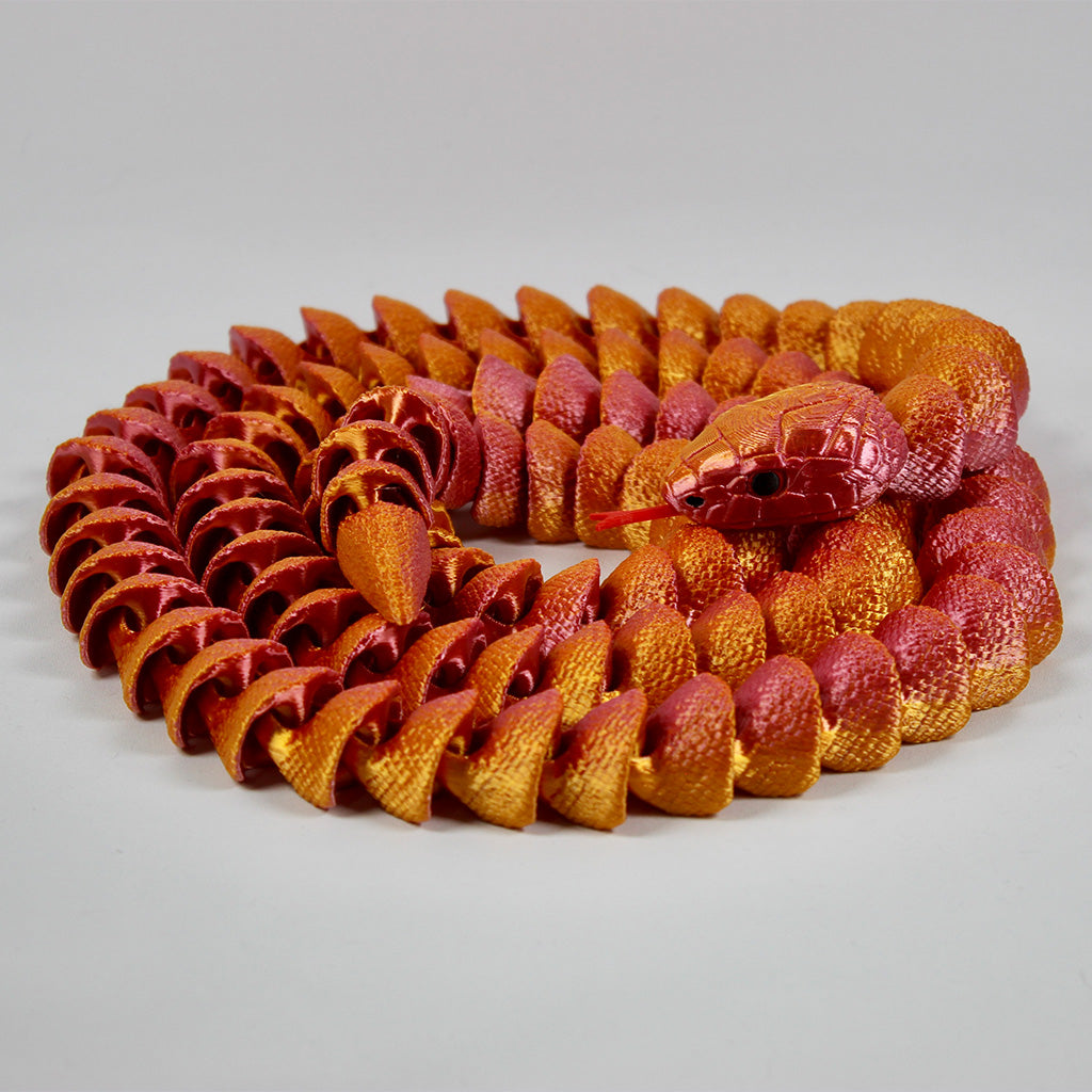 Slither into style with the Flexi Snake! 3D printed with shimmering PLA filament, this fully articulated snake moves realistically and features beautiful gradient scales. Ideal as a playful desk toy, fidget item, or eye-catching shelf decor.