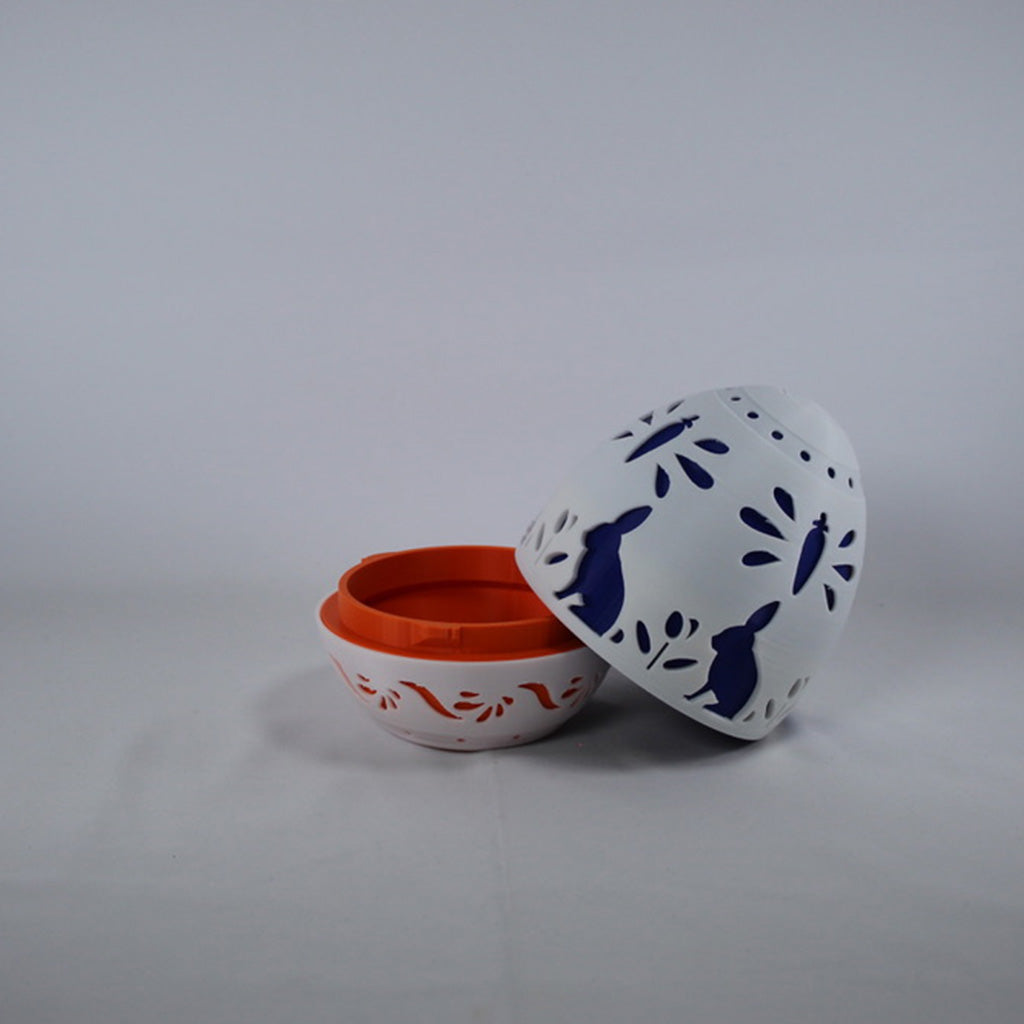 Celebrate the season with this charming 3D-printed Easter egg container. Featuring delicately carved rabbits, carrots, and floral accents, it’s perfect for storing treats, trinkets, or simply decorating your spring setup.