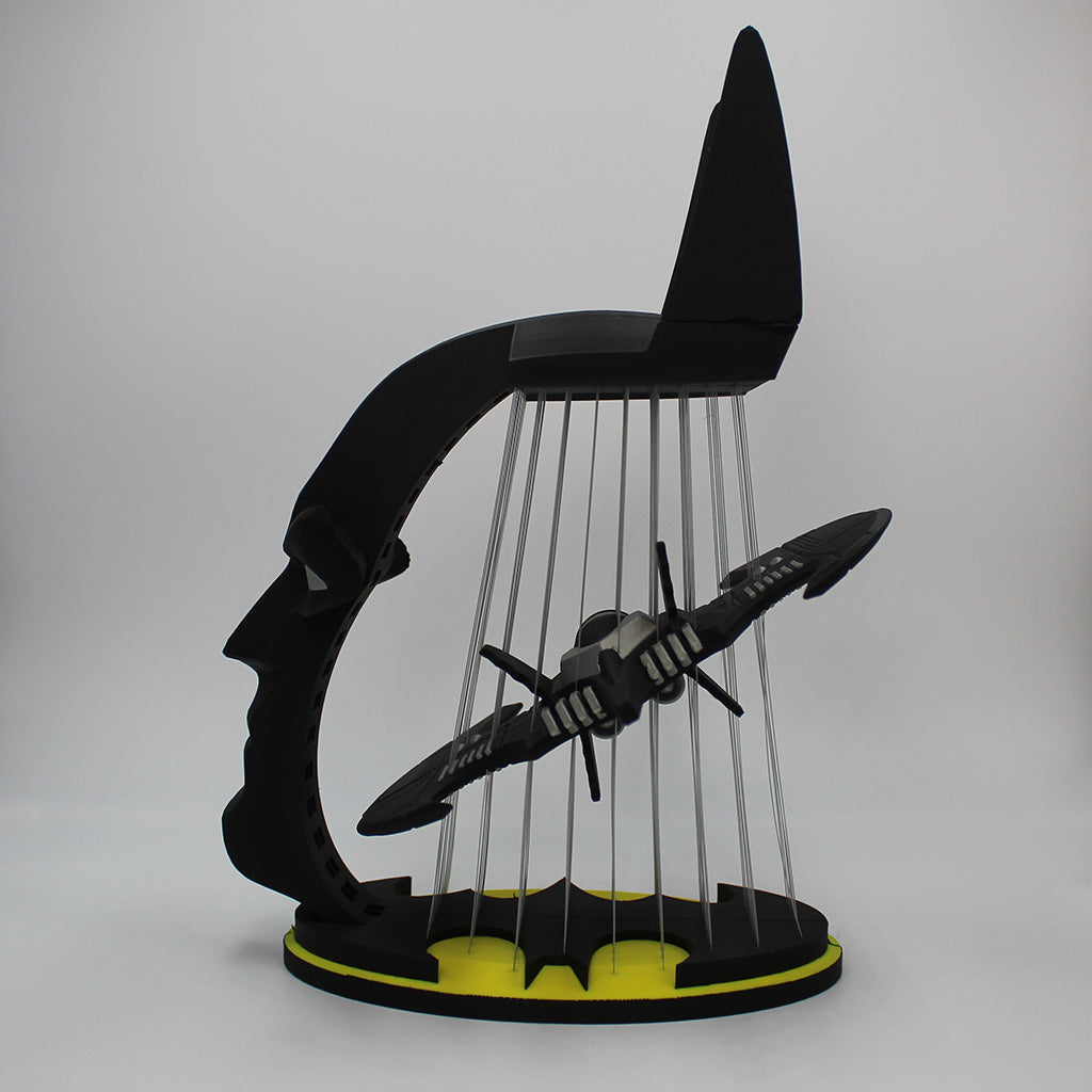 Unleash the hero within your decor! This epic Suspended Batwing display features a sleek 3D model of the legendary Batwing, suspended inside a bold Batman silhouette with precision threads that give it a floating effect. A true tribute to Gotham’s protector – perfect for desks, shelves, or home theaters. 🖤