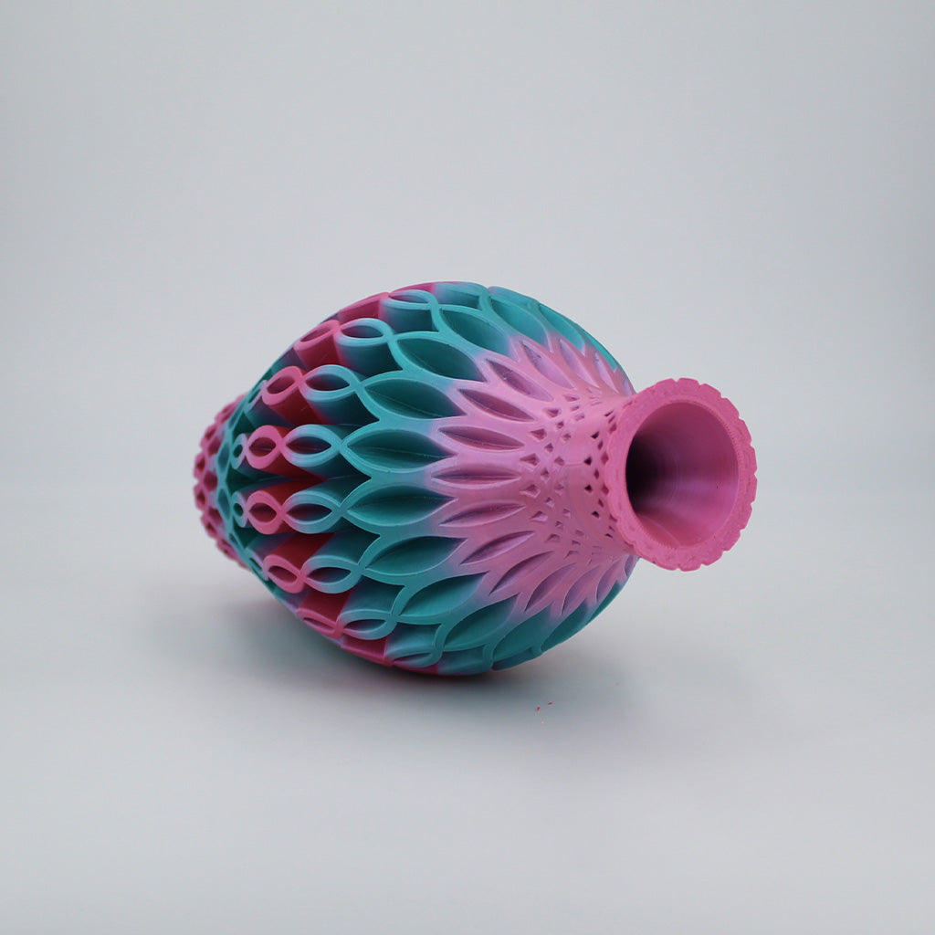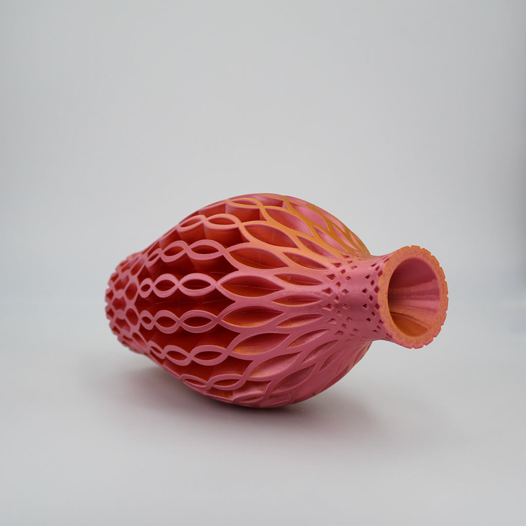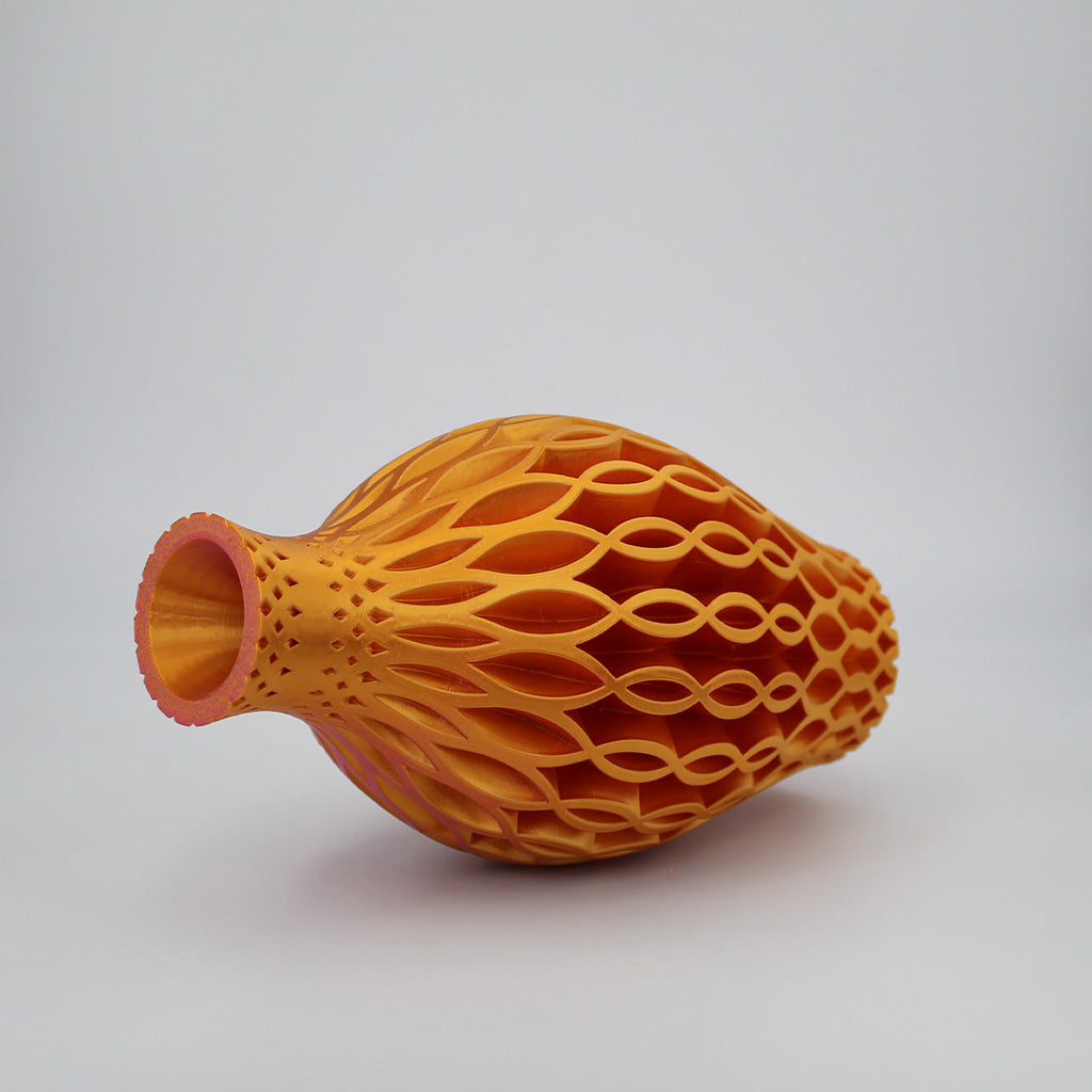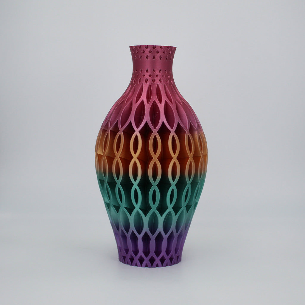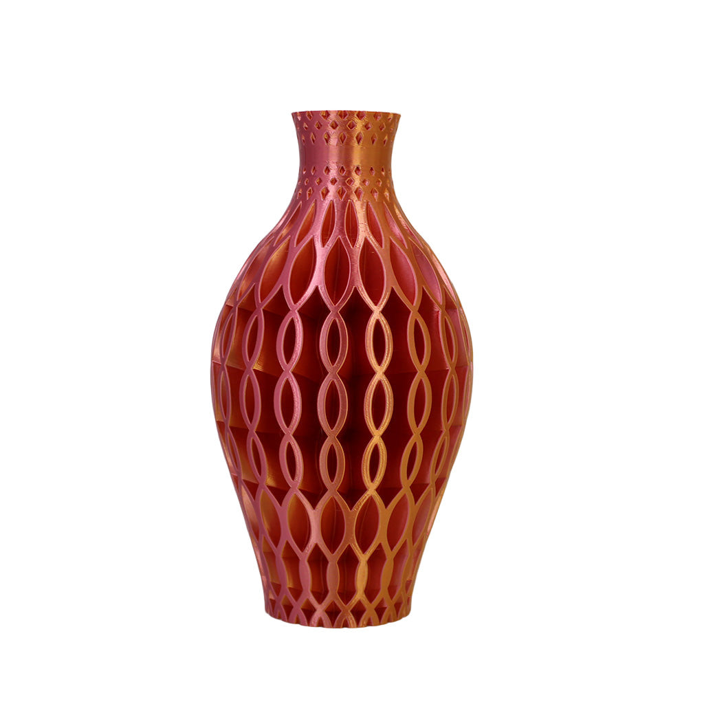 Radiant and warm, the Sunset Orange Waved Vase glows like a golden hour masterpiece. With its metallic gradient from orange to gold, this elegant 3D-printed piece captures the warmth of summer evenings and the sophistication of geometric art.